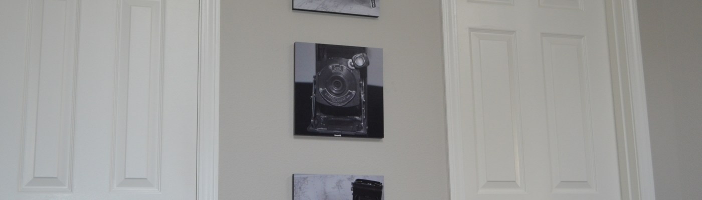 I made all my original prints black and white so they would match all the paint in my house. The prints turned out so well and cost effective I decided to start taking photos of things I like or collect and try to blow those up onto mounted pictures. I collect antique cameras and thought they would look cool in photographs. I took photos from various angles until I had a few that I liked. Check out the photo at the beginning of this blog the series of 3 photos of older cameras. I’ve also added some photos below I made into wall mounted prints. Check it out.